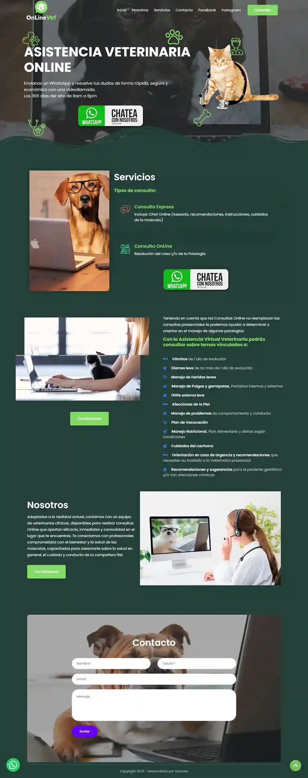 La plataforma también brinda la oportunidad de comunicarse directamente con el equipo a través de un formulario de contacto. Si tienes preguntas, inquietudes o deseas obtener más información, el equipo de Veterinaria Online está listo para asistirte.